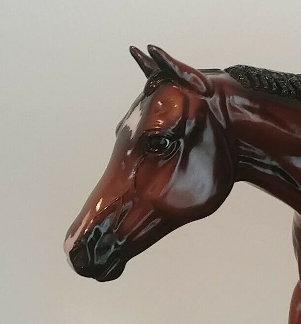 Glossy bay, dapples, star and snip, 3 socks, braided mane and tail version, stamped “BreyerFest 2019 30th Anniversary”, BreyerFest SR, 1/885