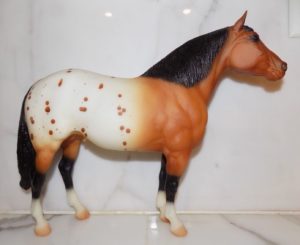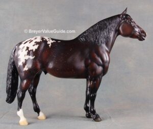 Matte dark bay appaloosa, stenciled blanket, large star and snip, 2 hind socks, Live Show Benefit Raffle SR, 1/50