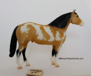 Matte buckskin pinto; low blaze with white muzzle; 4 socks; West Coast Jamboree SR 1/1500