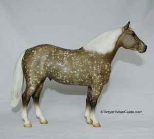 Matte dapple gray; resist dapples; 4 socks; bald face; pink nose; Black Horse Ranch SR; 1/1000