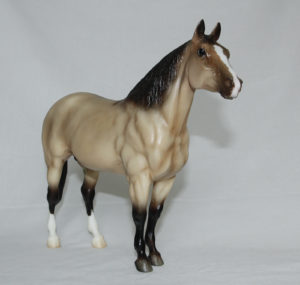 Buckskin pinto with dorsal stripe, wide blaze, 4 stockings, West Coast Model Horse Jamboree Judges Model SR, 1/75