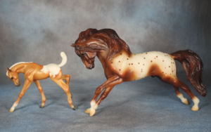 Matte light palomino/cream, blaze, grey hooves - with Rearing Stallion, Morgan Foal, Warmblood Foal