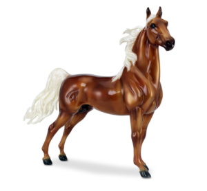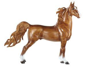 Glossy bright red chestnut; dapples; diamond star; 1 hind sock; America the Beautiful Series SR; 1/350