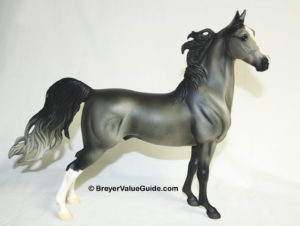 Matte dark gray; blaze; 2 hind stockings; JCP SR Saddlebred Trio