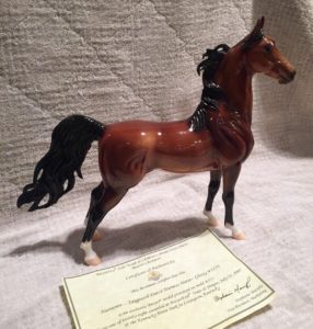 Glossy bay; 4 socks; striped hooves; with COA; QVC SR
