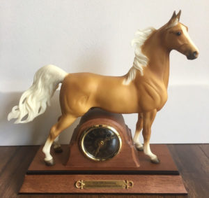 Glossy palomino mounted on clock; blaze; 4 socks; Hi-Way Hobby Raffle SR, 1/6