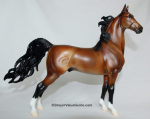 Glossy red bay; dapples; small star; 4 socks; BreyerFest Prize SR; 1/28