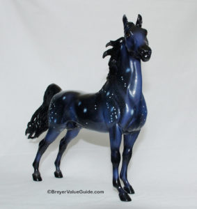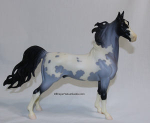Glossy black pinto; bi-color mane and tail; star; broken stripe; snip BreyerFest Show Prize SR; 1/24