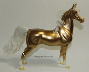 Glossy golden palomino, pearlescent mane and tail, solid face and legs, BreyerFest Early Bird SR, 1/3
