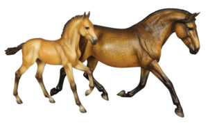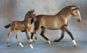 Matte sooty buckskin; dapples; "BreyerFest 2016" stamp; BreyerFest SR; 1/1700 - with Andalusian Foal
