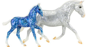 Glossy "shaded chalky palomino," 4 stockings, mare has blaze, foal has star, Vintage Club Gamblers Choice SR, 1/750 evenly split between three colors