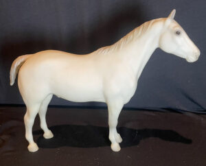 Matte dark chestnut; flaxen mane and tail; solid face; 4 socks; Horses International SR, 1/500