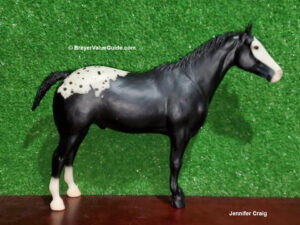 Matte black appaloosa; stenciled blanket; stenciled bald face; 2 hind socks; Sears SR - with Stud Spider and Running Stallion