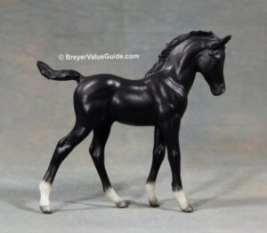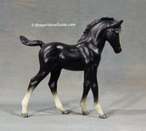 Matte black pinto; chin spot, small star, snip, 4 high whites - with Andalusian Foal Also released in 2006 as #720101