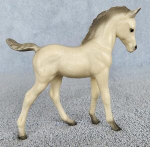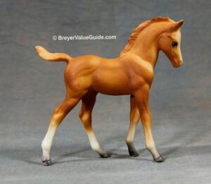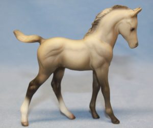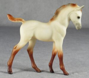 Matte palomino; bald face; 4 stockings; grey hooves, sold in blister packs