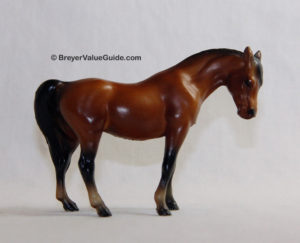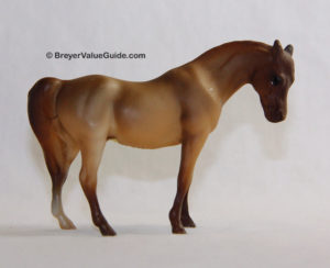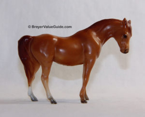 Matte red chestnut; darker mane and tail; 2 hind socks; Sears SR; 1/4400