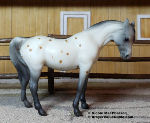 Matte chestnut leopard appaloosa; grey shaded mane, tail and legs; brown splash spots; JCPenney SR; 1/10600