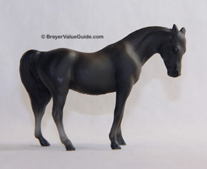 Matte steel grey; darker mane and tail; solid face; glossy eyes; 4 vague socks; dark grey hooves; JCPenney SR; 1/10000