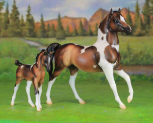 Glossy bay pinto; star-stripe; 4 high whites; Collector Club Appreciation SR - with Arabian Foal