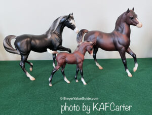 Matte light brown bay; diamond star; 3-4 low socks; Sears SR - with Arabian Foal and Arabian Mare