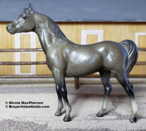 Matte dark rose grey; 2 hind socks with grey hooves; black mane and tail; JCPenney SR