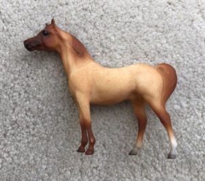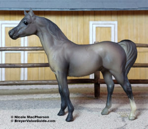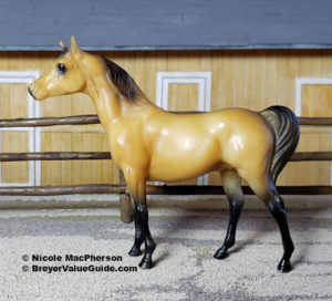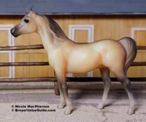 Matte dun; reddish head; blaze; black mane and tail; JCPenney SR; 1/1500