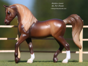 Victoire - Matte dark bay pinto; stripe-snip; 4 stockings; BreyerFest SR; miniature "Que Sera Sera"