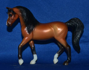 Matte shaded chestnut; snip; 2 socks (stenciled), Rural King release - with Standing Stock Horse