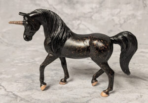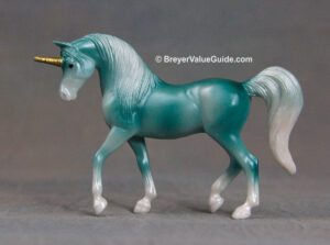 Semigloss turquoise, gold mane and tail, gold horn and hooves, same as #5521 released at Tractor Supply in 2021
