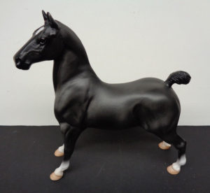 Matte black; star; 4 socks; red bands in mane; white basecoat chalky; BreyerFest SR; 1/200