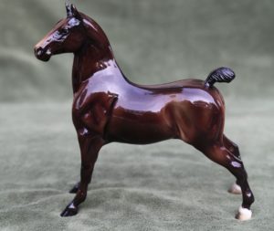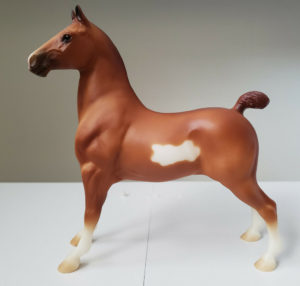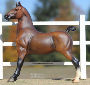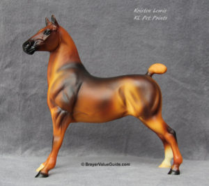 Glossy bay; solid face; hind socks; red bands in mane; BreyerFest prize; 1/26