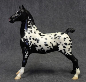 Semigloss black semi-leopard appaloosa; star; snip; 3 socks; BreyerFest SR; 1/1500