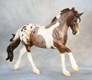 Matte strawberry roan, shaded points, 2 hind socks, long mane, BreyerFest SR, 1/2400