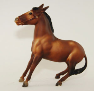 Matte dark chestnut; 4 socks; grey hooves; BHR SR; 1/400
