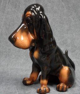 Matte or semigloss brown with black sadde back and white belly and muzzle; eye whites