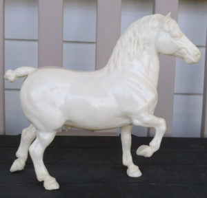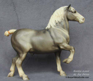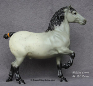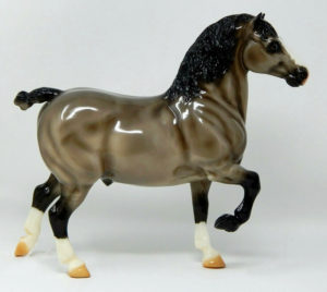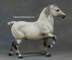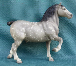 Matte alabaster; grey shaded points; grey hooves; blue crisscrosses on white ribbon; Sears SR - with Roy and Shire