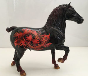 Matte red roan; white crisscrosses on red ribbon; Horses International SR; 1/600