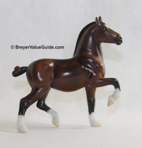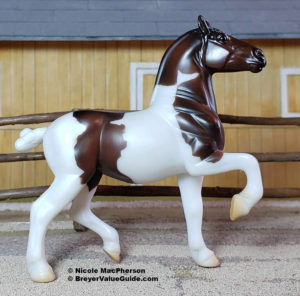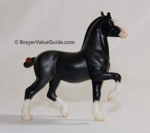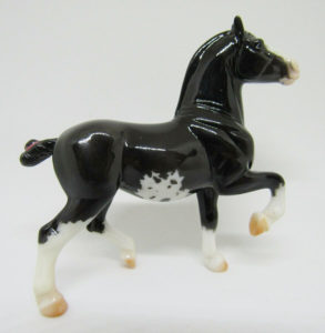 Glossy black sabino pinto; wide blaze over pinked muzzle; 4 socks; pink tail ribbon; BreyerFest Gamblers' Choice 1-Day Ticket Model; 1/1000
