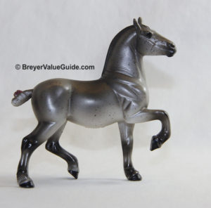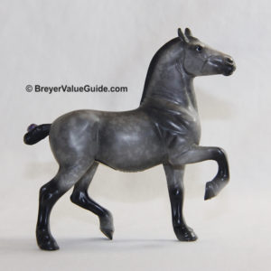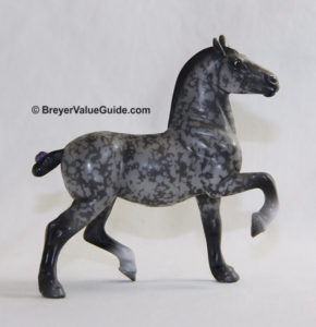Matte light grey; dapples on hips; pink muzzle; pale blue ribbon; 3 natural hooves; BreyerFest SR; 1/500