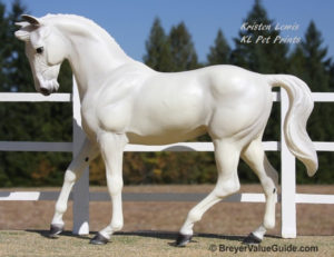 Matte, pearlescent shaded white, grey muzzle, grey hooves with painted shoes