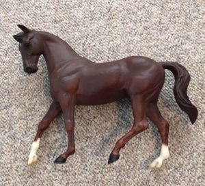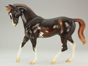 Matte liver chestnut; darker than #483; well masked/sharp blaze; 2 hind socks; with hang tag; World Equestrian Games SR; 1/48