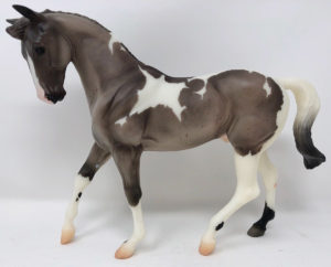 Matte grey pinto; dapples; fleabites; wide blaze; 1 grey hoof; BreyerFest SR; 1/1100