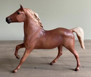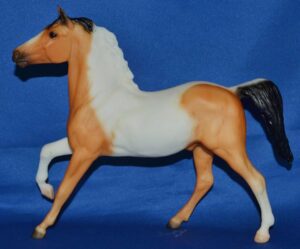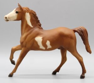 Matte light bay pinto; blaze; 1 white front leg; 1 hind sock; State Line Tack SR - with Arabian Foal and Ginger