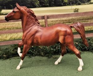 Black Beauty: Matte liver chestnut; flaxen mane and tail; 1 front sock;