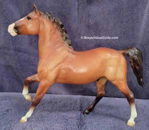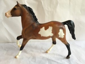 Matte light bay pinto; blaze; 1 white front leg; 1 hind sock; State Line Tack SR - with Arabian Foal; Ginger