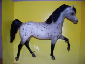Black Stallion - Matte leopard appaloosa, black and brown splatter spots, black points, grey hooves, same as #811 Majestic Arabian Stallion