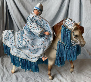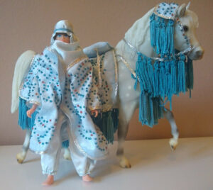 Matte light grey; resist polka-dot spots; shaded points; includes tack and doll