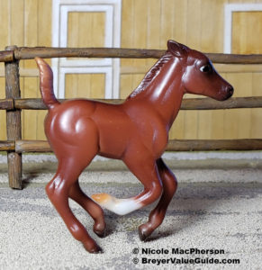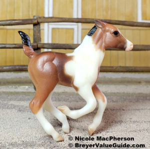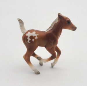 Matte chestnut pinto; stenciled apron face; shaded tail; 4 high stockings