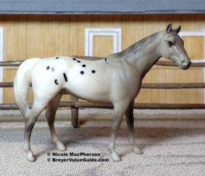 Matte leopard appaloosa, grey and black spots, roaning, stripe, tan shading in mane and tail, Stablemates Club SR