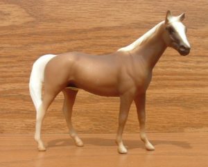 Matte dark palomino; blaze; grey hooves; JCPenney SR